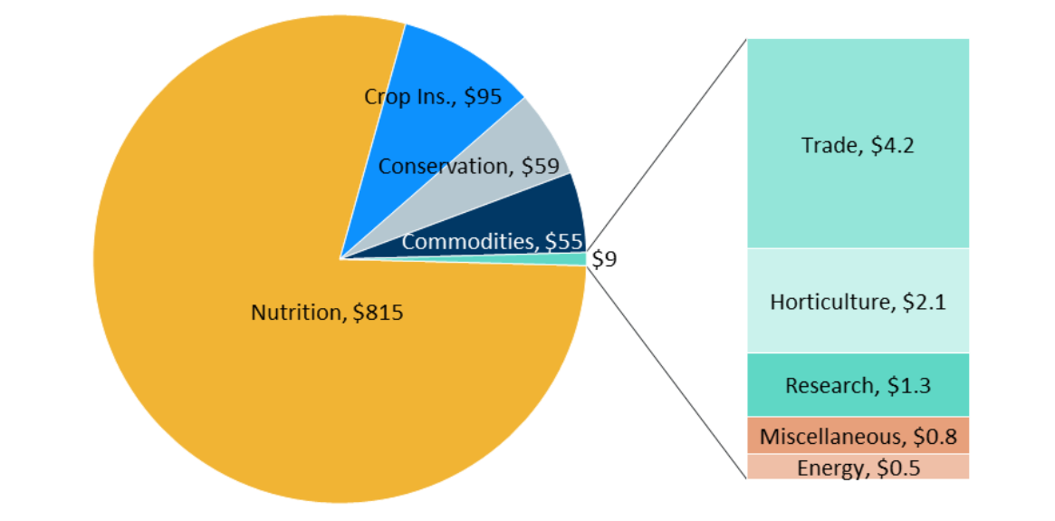 While much of the public debate addresses the Farm Bill’s nutrition programs, the programs with the largest environmental impacts are conservation subsidies, research, and commodity production subsidies and insurance.